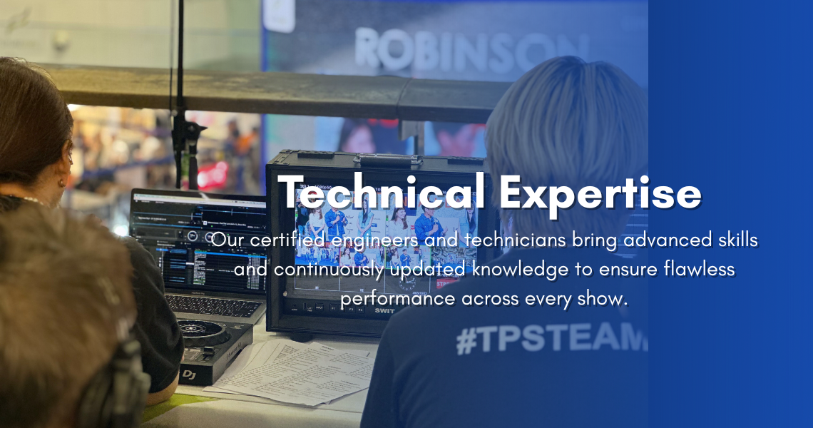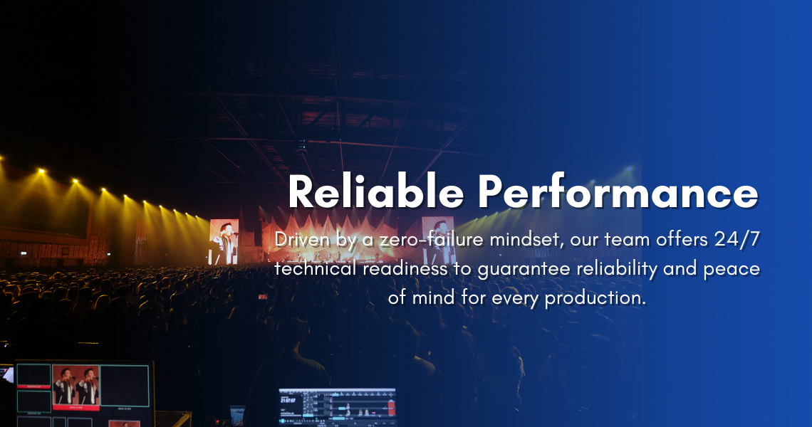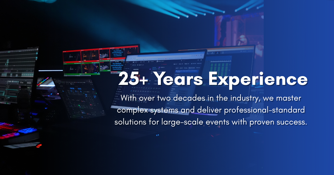 Technical Challenge: "บริหารจัดการระบบภาพแบบครบวงจรที่มีความซับซ้อนสูง โดยต้องรับสัญญาณภาพจากหลายแหล่งและส่งออกไปยัง LED หลายรูปแบบ ทั้งจอหลักกลางเวที จอ IMAG ซ้าย-ขวา รวมถึงจอ LED ที่ติดตั้งบนฐาน Lift ลอยได้ ซึ่งมีโครงสร้างพิเศษเป็นช่องสี่เหลี่ยมจัตุรัสไม่เต็มพื้นที่ จำเป็นต้องใช้เทคนิค Mapping เฉพาะทางในการจัดการภาพให้แสดงผลตรงตำแหน่งอย่างแม่นยำ นอกจากนี้ยังมี LED บริเวณพื้นเวทีที่ต้องซิงค์ภาพร่วมกับส่วนอื่นในเวลาเดียวกัน จึงต้องอาศัยทั้งความเชี่ยวชาญและการประสานงานแบบเรียลไทม์ระหว่างทีมงานภายในและทีมคอนเทนต์"