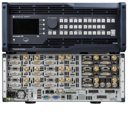 notch presentations. The Analog Way Ascender 48 is a powerful multi-screen seamless switcher based on Analog Way’s LiveCore™ platform, offering state-of-the-art processing, soft edge blending, and 4K capabilities for top-notch presentations.